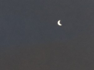 1. It was 84% here, but we didn’t try to view it. I was surprised at how light it was outside even so, but my ex the physicist informed me that the eye’s capacity to perceive light is measured logarithmically, i.e., 85% is really still very light out.