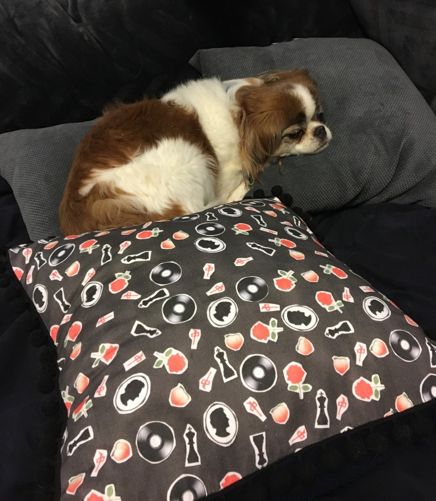 In the past, I’ve usually stuck to Guylty’s Armitage-related designs, available here. She even has a new one with a white background she displays here, as a comforter or shower curtain. I am rather partial to the black pattern which I had on my now-cracked old case and other fan items, and apparently my dog likes it too!