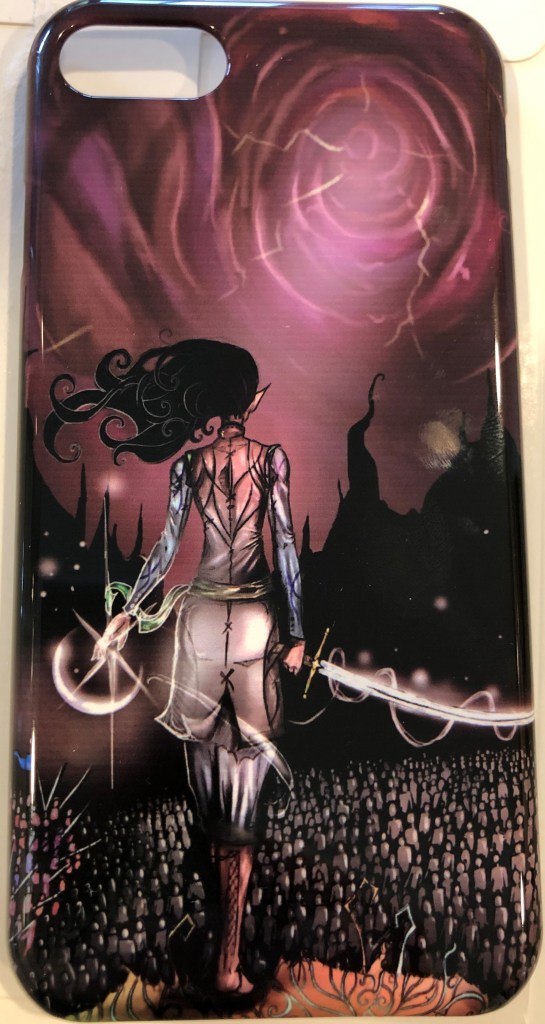 I was very excited this week to receive my new phone case in the mail! These cases are snap-on and, if you pair them with a separate glass screen-protector, do a great job of protecting the phone while making a hidden statement. Of course, given the number of times I drop the phone, the cases eventually crack and have to be replaced…. which is great, because I get to buy new artwork and support my fellow fans!
