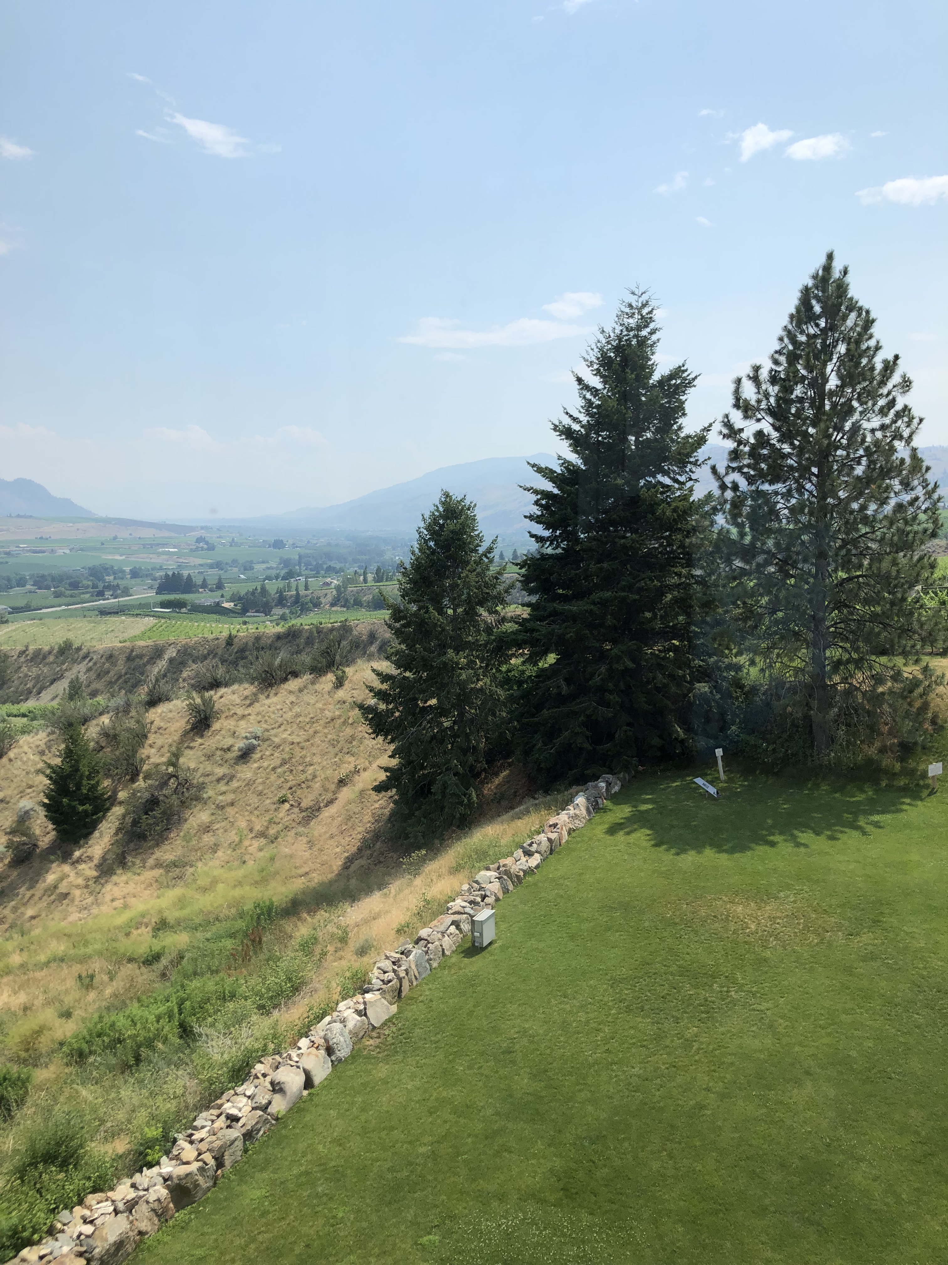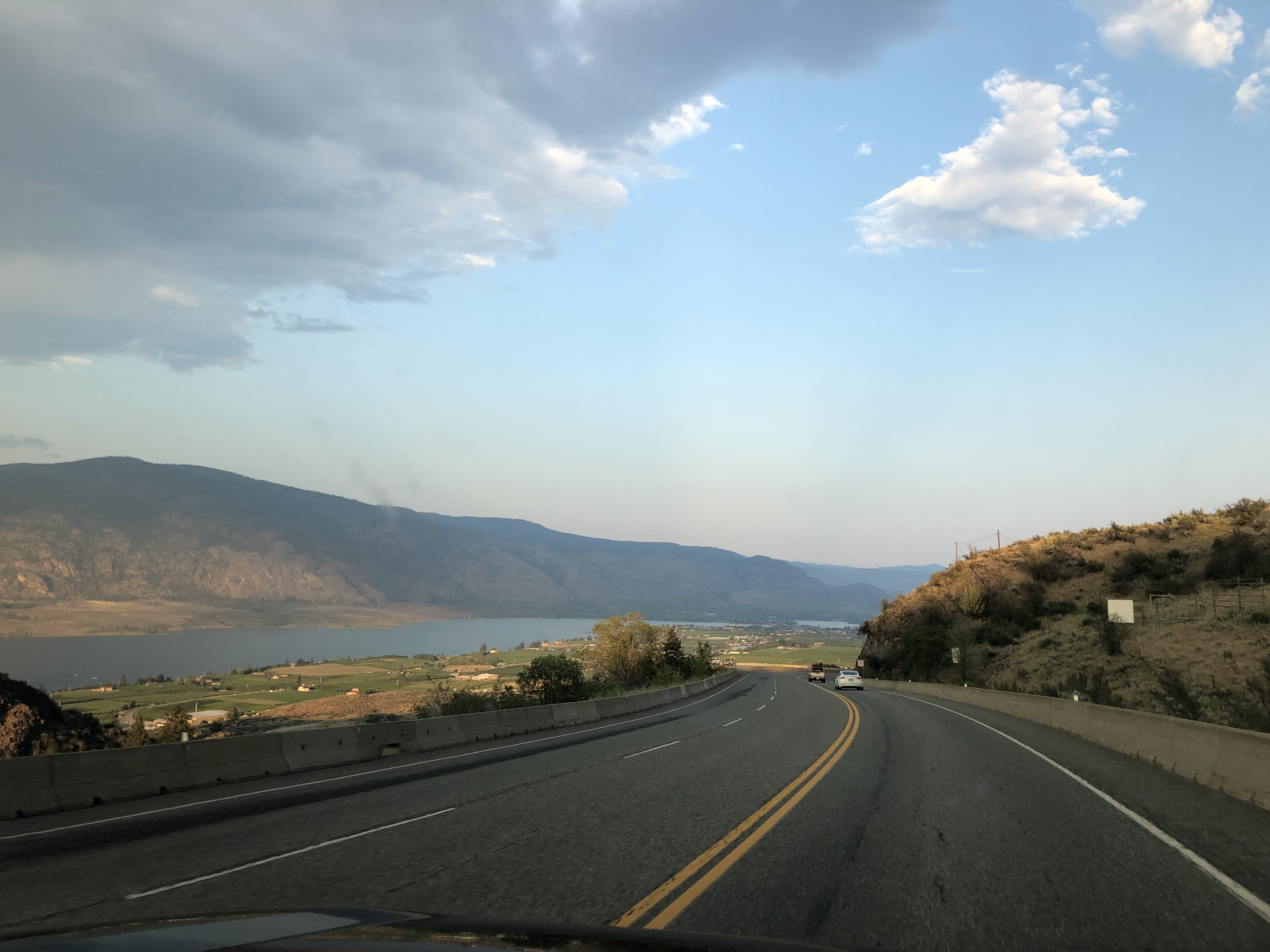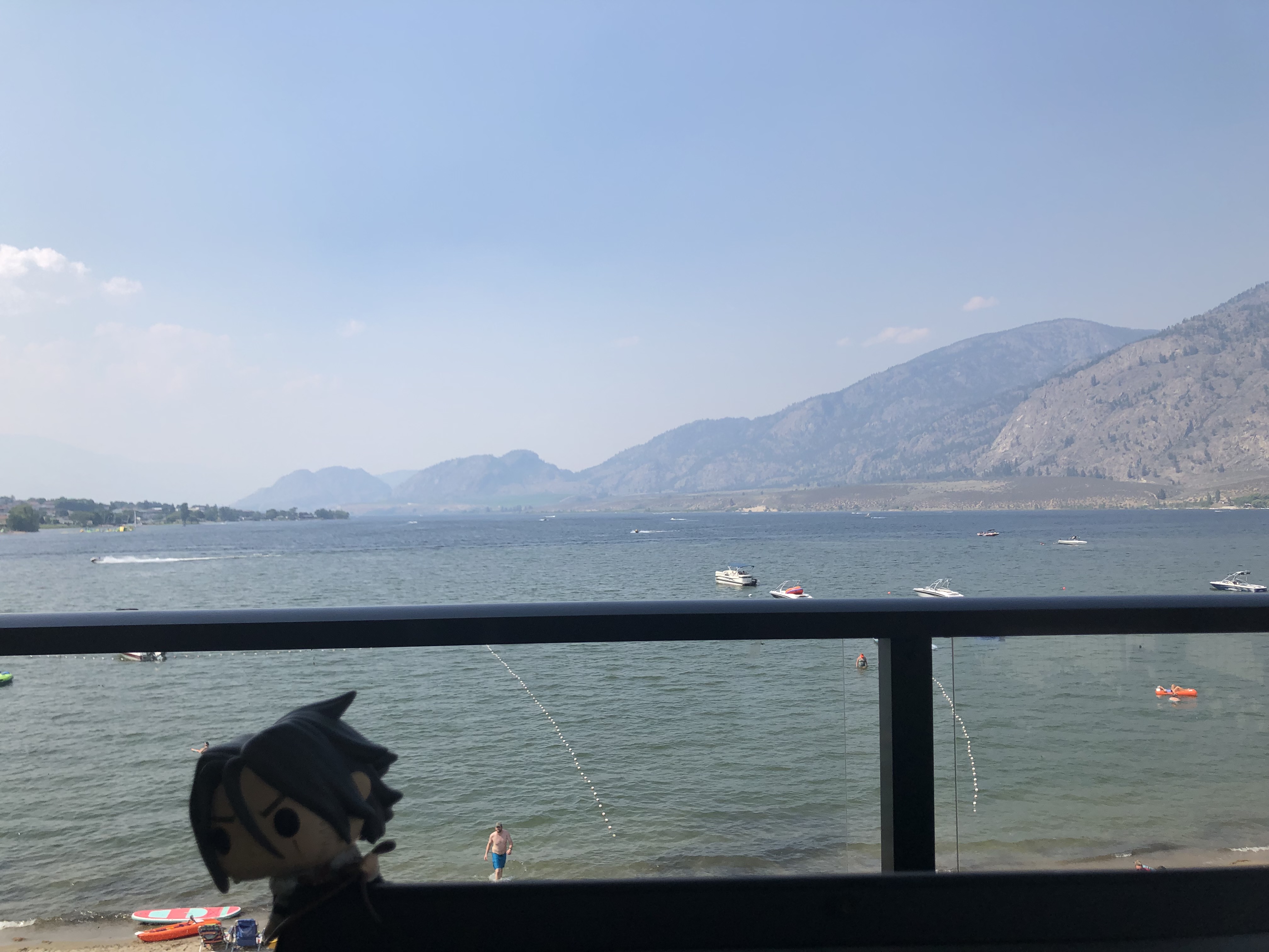 We arrived at our annual home-province beach getaway in Osoyoos on Saturday evening, after a journey partially pictured above. I wasn’t sure it was going to happen, as our old dog has not been very well, with his heart condition and worsening bladder stones. While surgery has been postponed for now, the vet did suggest that putting him in a kennel was not a good idea and so we had to ask my older son to come and stay, leaving behind his air conditioning and his short commute to work. That settled, we cleaned the house and were a couple of hours away from leaving when we noticed a huge puddle of water on the floor of the laundry room, which apparently had come all the way from the master bathroom shower upstairs. Looks like a pipe has sprung a leak and given the distance the water travelled, it might be an expensive fix. Luckily, we determined it was limited to the master shower and so just directed my son to use a different shower during his stay.