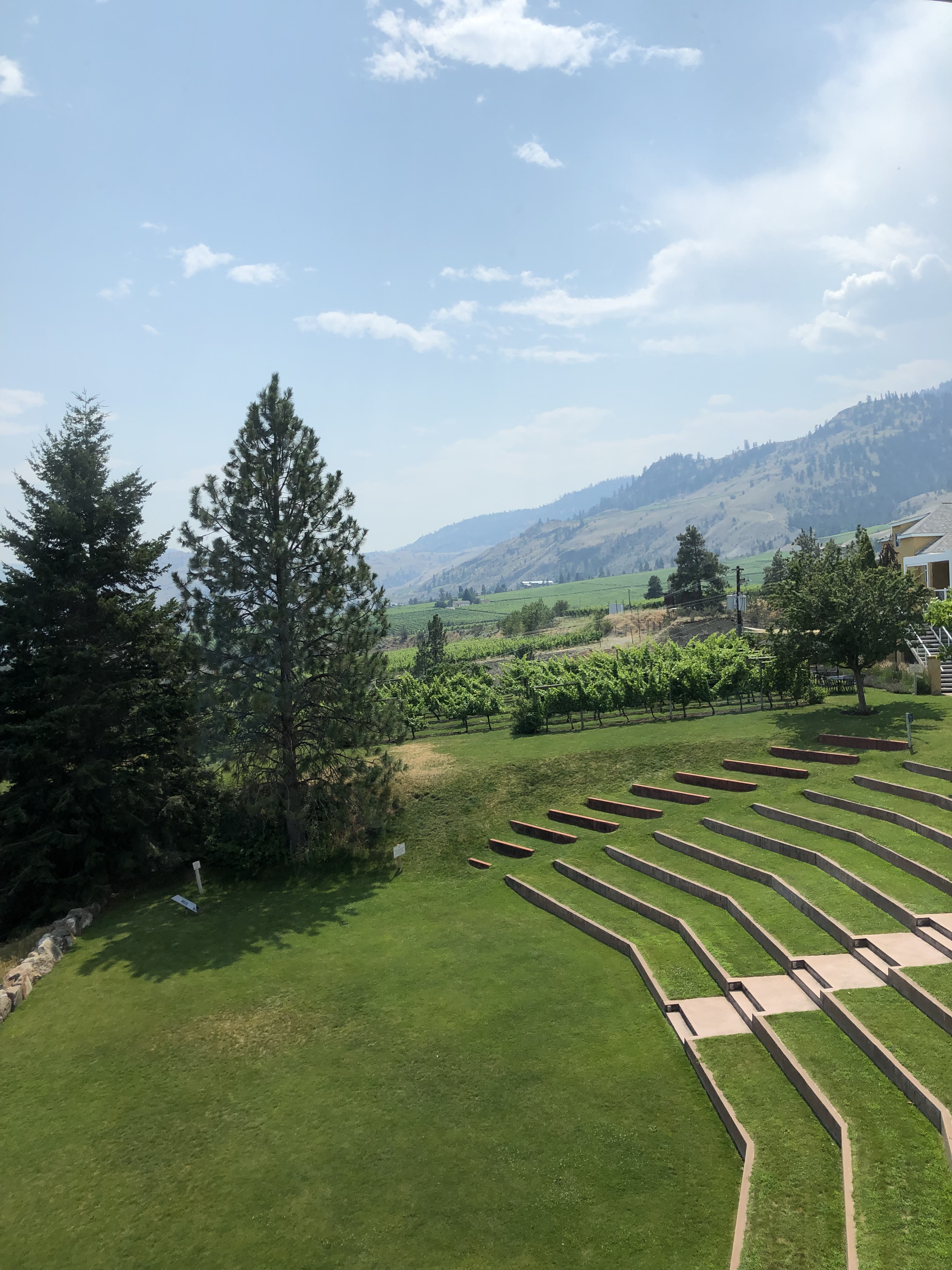 Monday, was our first winery day, with lunch at Tinhorn Creek, a favourite view spot (view as pictured above) with some great food (pictured below). They convinced us that the only salad option, the baby kale Caesar salad, was “tender like lettuce”. Hmm. Not quite. My husband referred to it as the Nietzsche Salad, as in, “That which does not kill us, makes us stronger.” I concur.